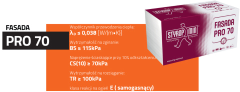 Płyty styropianowe Fasada PRO 70 o grubości 15cm posiadają bardzo dobre właściwości.